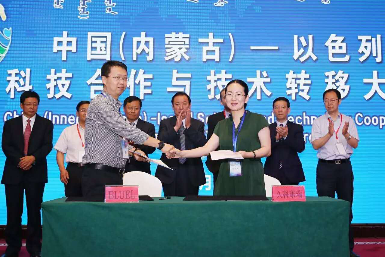 久科環(huán)保董事長李戰(zhàn)勝帶隊(duì)參加了此次會議。大會上,中以雙方共簽訂了4項(xiàng)科技合作協(xié)議:自治區(qū)生物技術(shù)研究院與以色列新技術(shù)協(xié)會、AKOL公司分別簽署“內(nèi)蒙古·以色列農(nóng)業(yè)技術(shù)轉(zhuǎn)移轉(zhuǎn)化中心建設(shè)”和“農(nóng)作物栽培云服務(wù)平臺建設(shè)”協(xié)議;鄂爾多斯市恩格貝生態(tài)示范區(qū)與以色列碧海碧國際商務(wù)咨詢有限公司簽署“現(xiàn)代化智能溫室建設(shè)”協(xié)議;內(nèi)蒙古久科康瑞環(huán)保科技有限公司與以色列BLUE I藍(lán)典水質(zhì)儀表科技公司簽署“智能水質(zhì)量管理”項(xiàng)目協(xié)議。