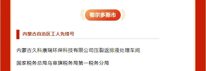 為表彰先進(jìn)、樹立典型,大力弘揚(yáng)勞模精神、勞動(dòng)精神、工匠精神,激勵(lì)廣大職工愛崗敬業(yè),營(yíng)造勞動(dòng)光榮的社會(huì)風(fēng)氣,4月28日上午,內(nèi)蒙古自治區(qū)慶祝“五一”國(guó)際勞動(dòng)節(jié)暨自治區(qū)五一勞動(dòng)獎(jiǎng)表彰大會(huì)在呼和浩特市召開,揭曉2024年內(nèi)蒙古自治區(qū)五一勞動(dòng)獎(jiǎng)以及“工人先鋒號(hào)”獲獎(jiǎng)名單,內(nèi)蒙古久科康瑞環(huán)保科技有限公司壓裂返排液處理車間榮獲“”內(nèi)蒙古自治區(qū)工人先鋒號(hào)。